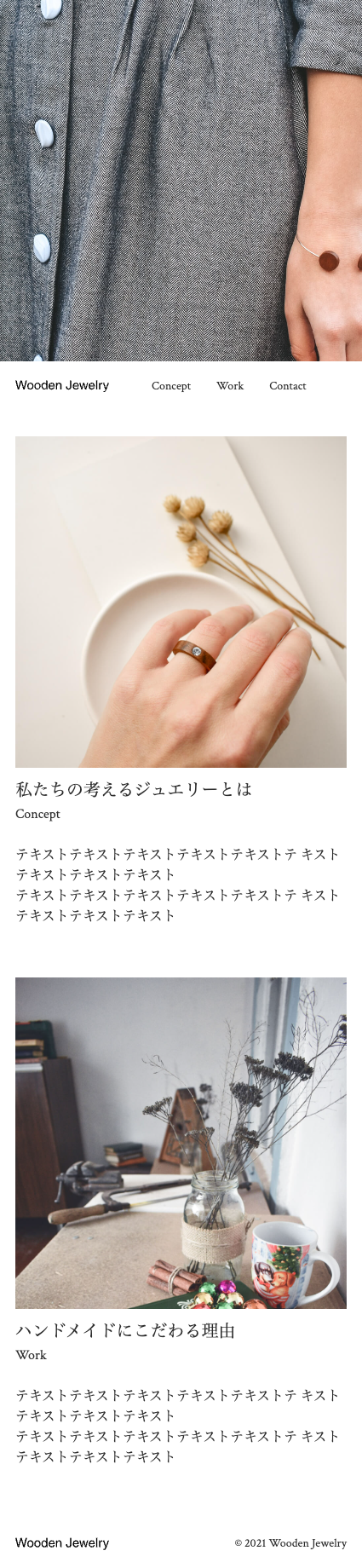 コーディング模写⑥Codejump入門編6 | Wooden Jewelry ほげきゃ@web・デザイン学習中 コーディング・デザイン学習者 OVERVIEW Codejump入門編6 | Wooden Jewelry の模写コーディングです。 ブランドサイト(ジュエリー)/1カラム YEAR 2024 ▼PC▼SP WEBSITE