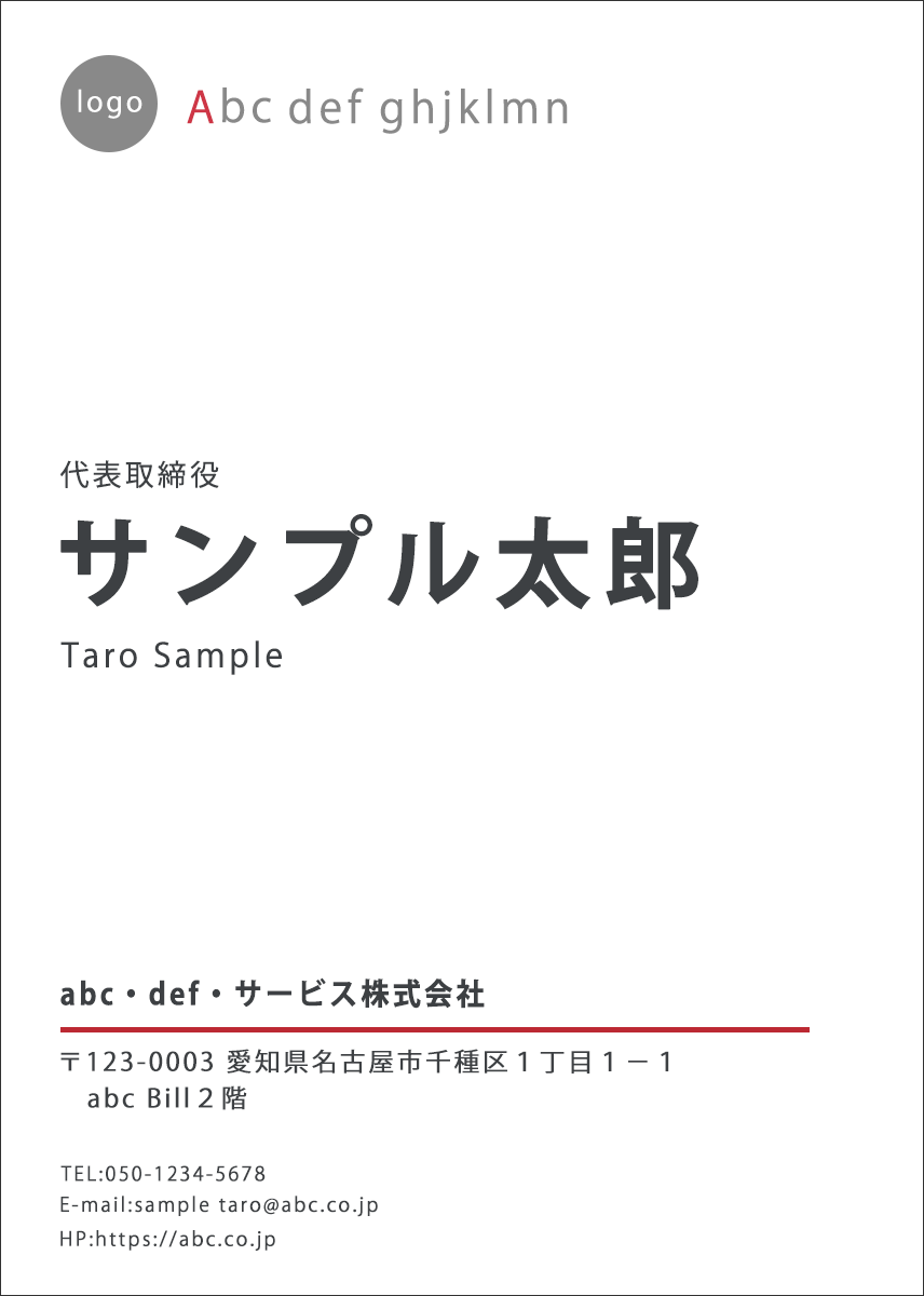 人の視線が「Z」に動くという理論を利用し、ロゴを一番目につきやすいトップに持ってくることで、シンプルなデザインながらも、しっかりと会社のイメージを伝えられるように意識した。また名前の前後に余白を多くとることで、名前が強調されるようにデザインした。