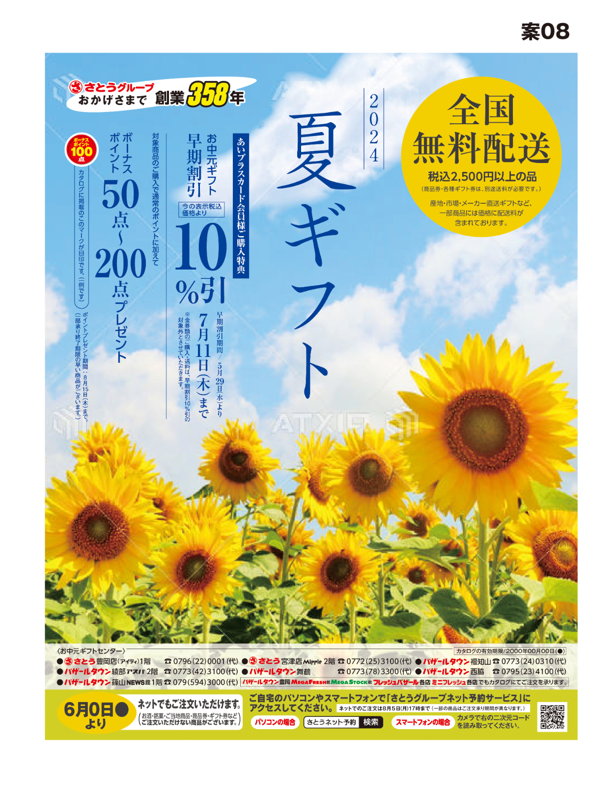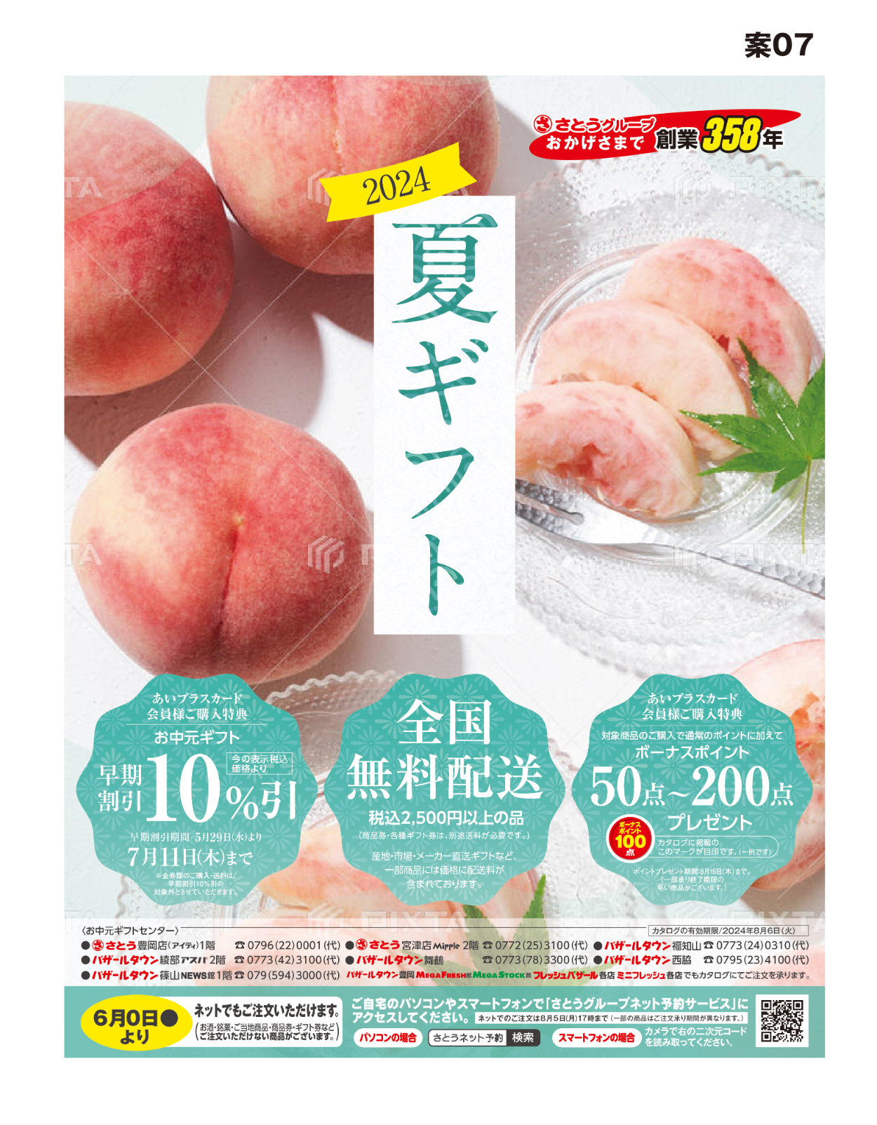 2019〜2024年 (株)さとう様 制作物 浦 夏実 OVERVIEW 2019〜2024年に制作した(株)さとう様の制作物です。 YEAR 2019 - 2024 オープンチラシ(年1〜2回)リフレッシュオープンチラシ(年2〜3回)カタログ(年2回)カタログ表紙 提案レギュラーチラシ