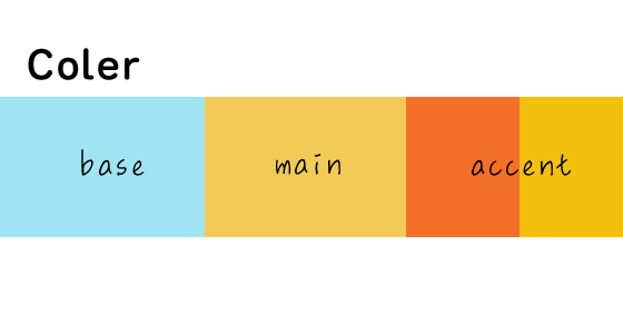 ベースを水色にして、オレンジ系統をメインとアクセントにして配色しました。