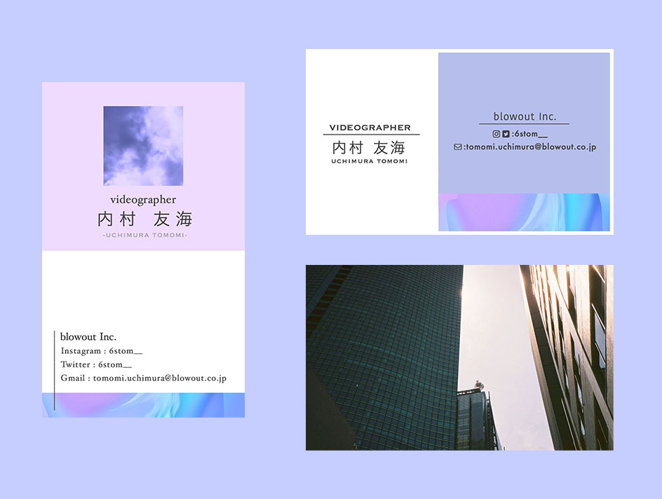 普通の名刺のようにしたくないというオーダーが来ていたため、裏面を友人の実際に撮った写真を貼り付け、本物の写真に見えるように配置をしました。今回は映像作家が使用するための名刺を制作したため、それに合わせて友人の作品や面白さを取り入れることを意識しました。