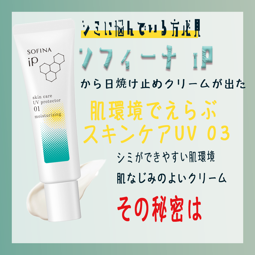 商品名の「肌環境で選ぶスキンケアUV03」の文字を大きくし、色を変え視認性を持たせました。