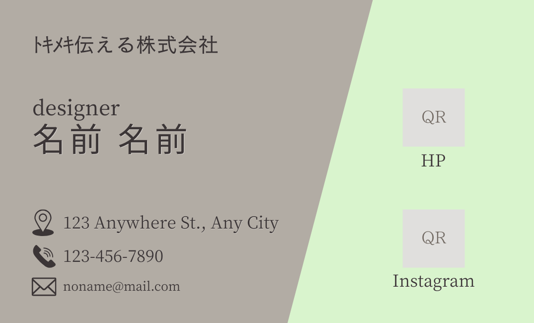 名刺(自主制作) nya デザイナー シンプルなレイアウトに印象的なグリーンを取り入れ、爽やかさと個性を表現しました。裏面には直線的なデザインの中に曲線を加えることで、スタイリッシュさと柔らかさの両立を意識しました。