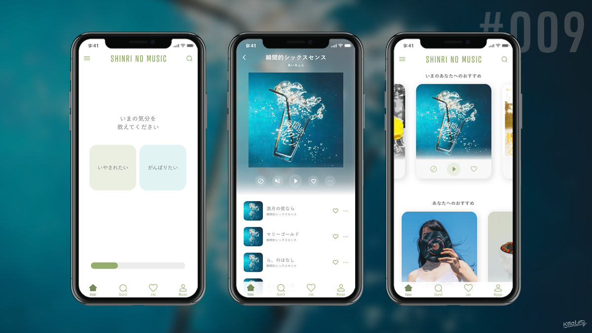 #DailyUI009 で制作した心理学を使用した音楽プレイヤーのいいね画面を制作しました。いいねをつけることで心理学+いいねした音楽をAiが判断し、おすすめの音楽を教えてくれるという設定です! 優秀なAiです!