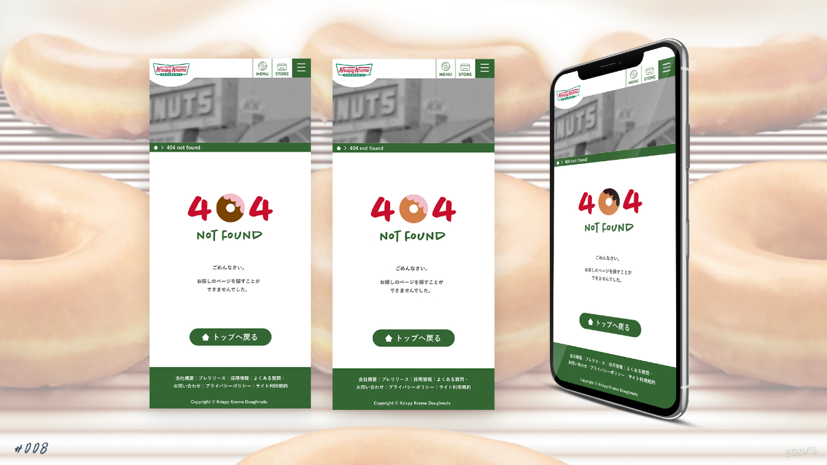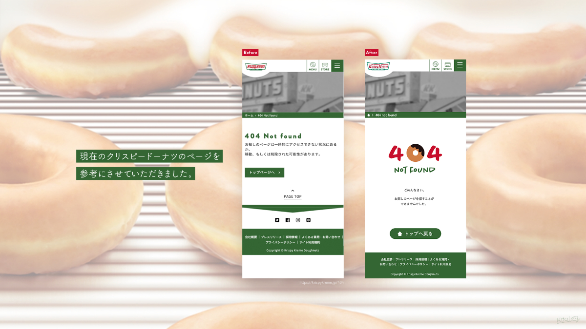 クリスピードーナツさんの404ページを参考にさせていただき「ドーナツ屋さんの404エラーページはこうあってほしいな」という願望を込めました。