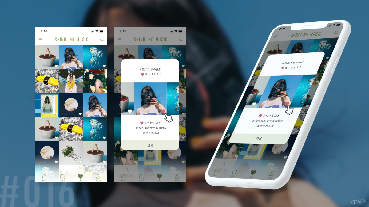 心理学を使用して「音楽を聞きたい、でも何を聞いて良いかわからない」という悩みにお答えできるサービスになればなと思い制作しました。モーションもつけました。