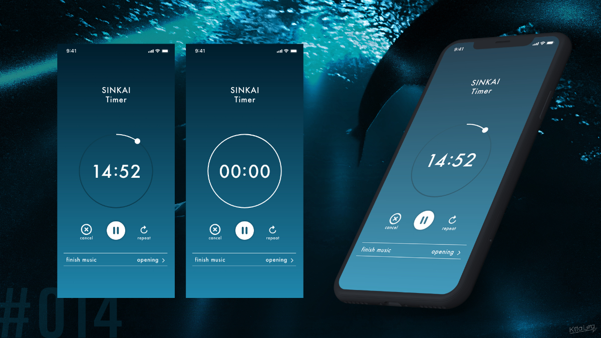 深海のようなデザインのタイマーです。きっと音楽は「ジョーズ」のダンダンダンダンダンダンダンダン!になるに違いありません。