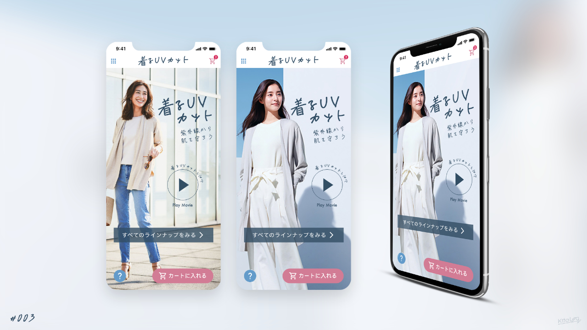 現状、ユニクロのロゴマークやカラーの印象が強くなってしまい「着るUVカット」という印象が薄いと感じたので、「着るUVカット」というブランドがもしあったらという想像で制作しました。