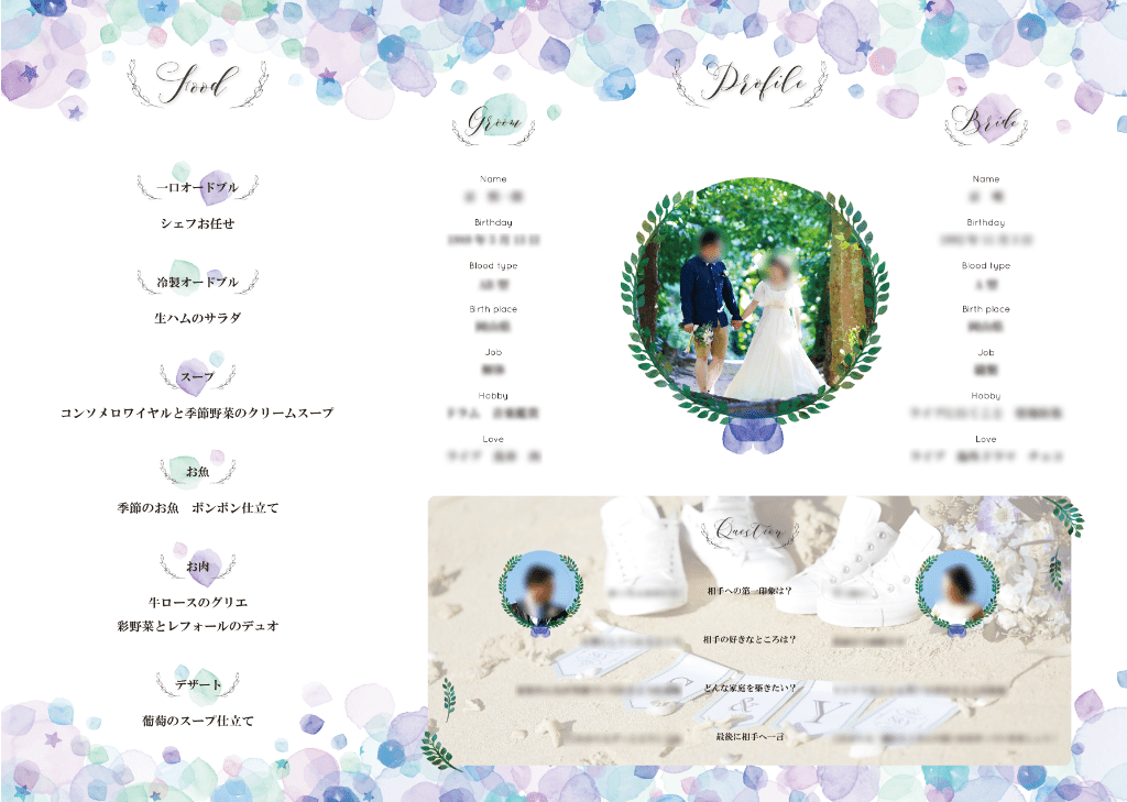 - 水彩や手書き風の素材を使用して柔らかさと、カジュアルさをプラス
