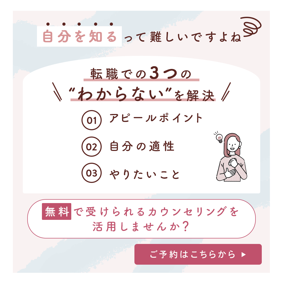 - 1番最初に「転職での3つのわからないを解決」に目が止まるように下線で目立たせ、中央に配置。
