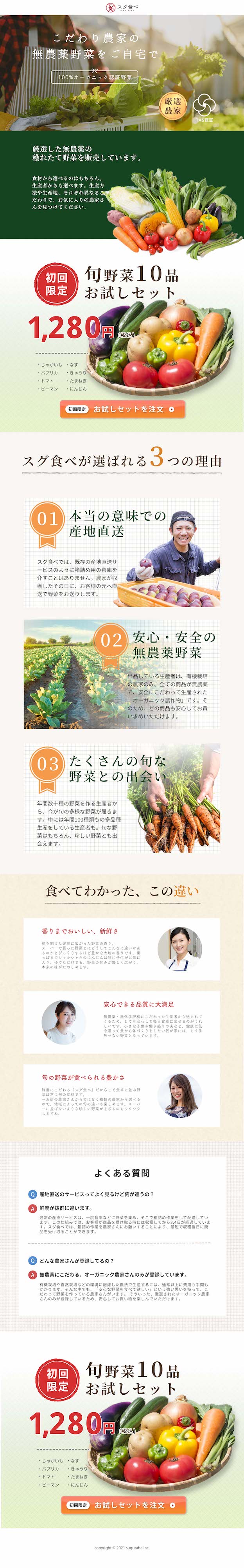 「無農薬・有機野菜・オーガニック野菜」「からだにいいものを作っているを農家をセレクトしている」「産地直送」「旬のものが味わえる」