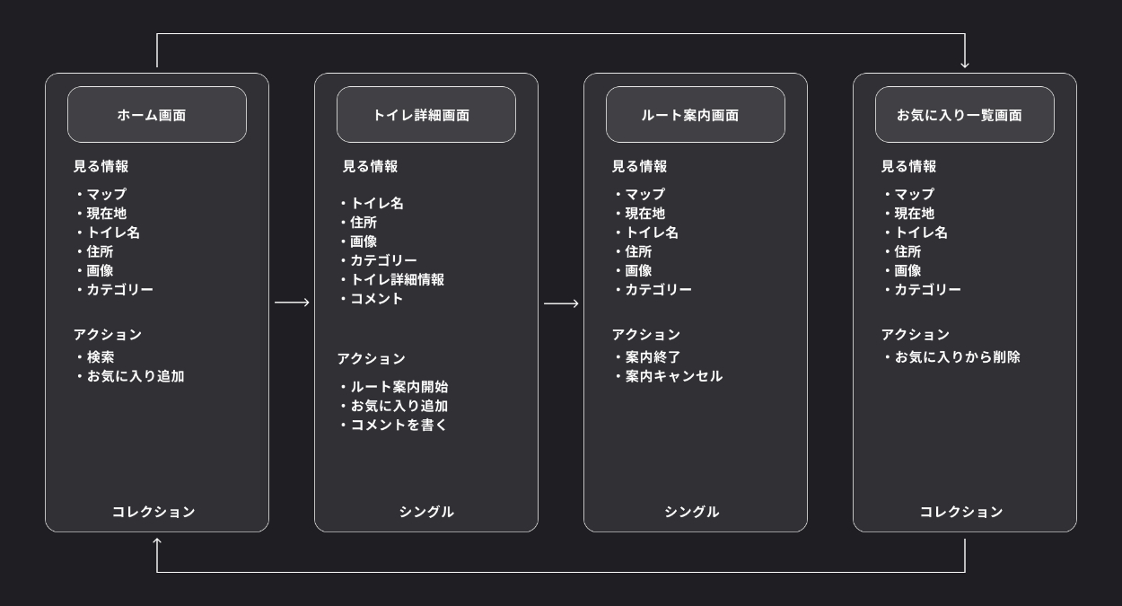 【制作物】トイレ検索アプリのUIはこちら