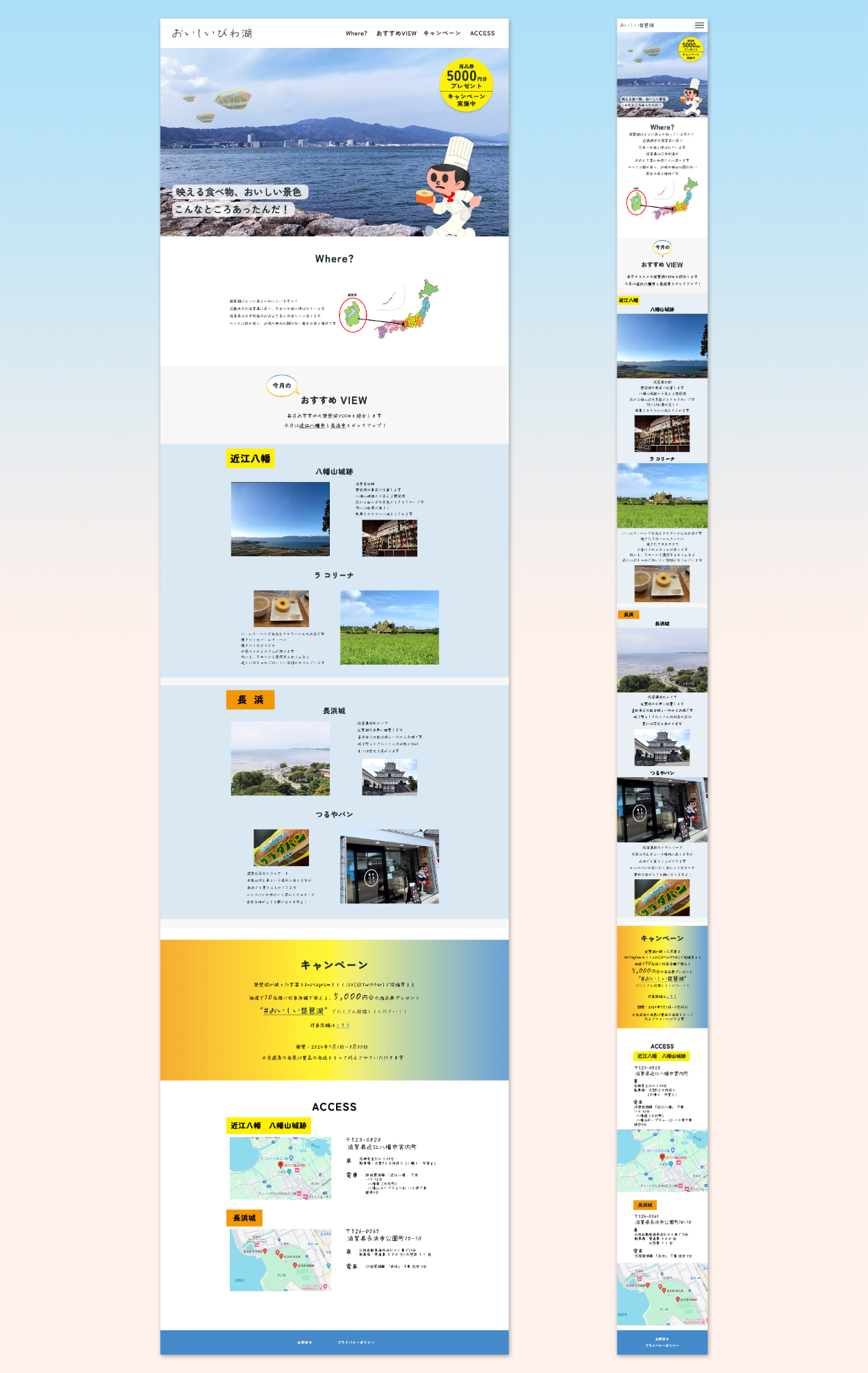 オンラインスクールの実技試験課題にて、滋賀県観光促進サイトの LPを制作しました。要件定義・ペルソナの設定・コンテンツ内容の検討・ライティング・情報設計・ワイヤーフレーム作成・デザインカンプ作成・コーディングまで行いました。