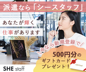 SHElikes WEBデザインコースの演習課題で作成。転職を考えている20〜30代女性向けの派遣会社求人広告バナー。【Photoshop】