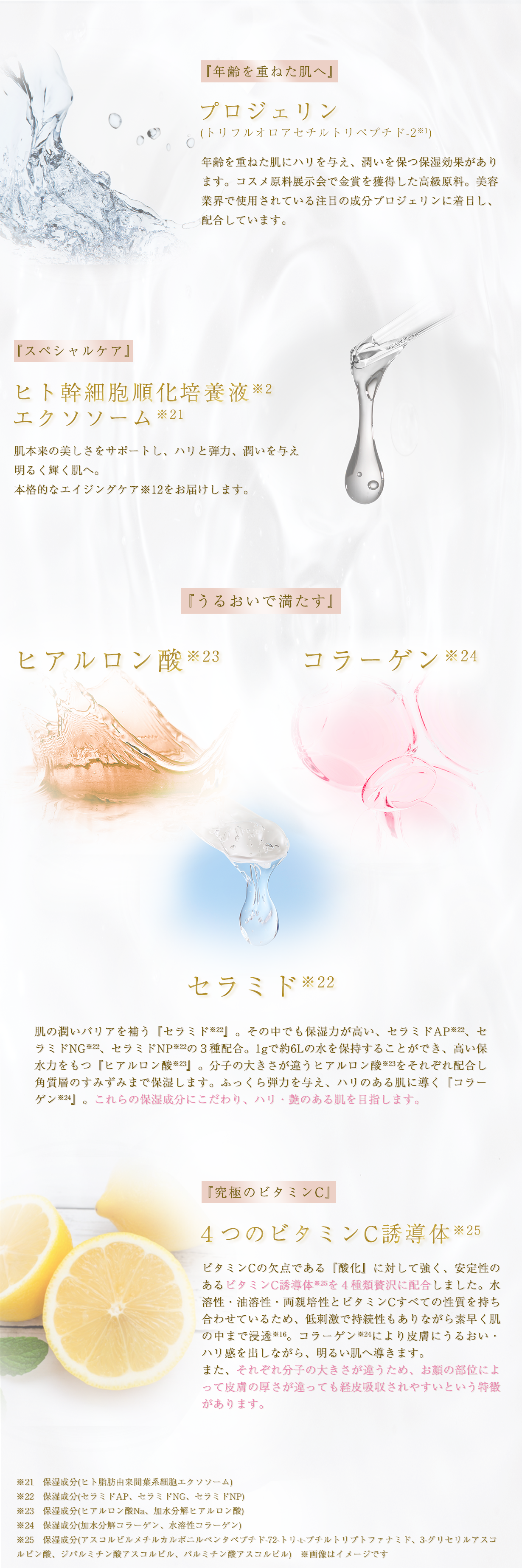 ・スキンケアブランドのため、みずみずしさを表現するため、成分イメージの画像の透明度や明度を上げています。