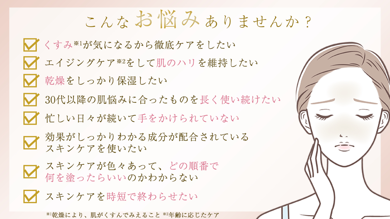 提供素材:商品パッケージ画像(化粧水+美容液・クリーム各1枚)、文章