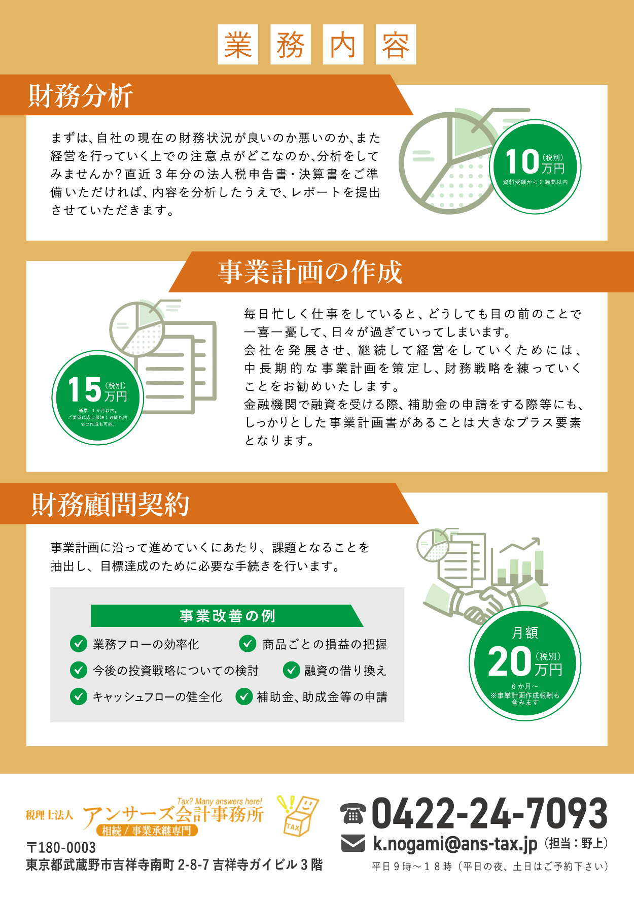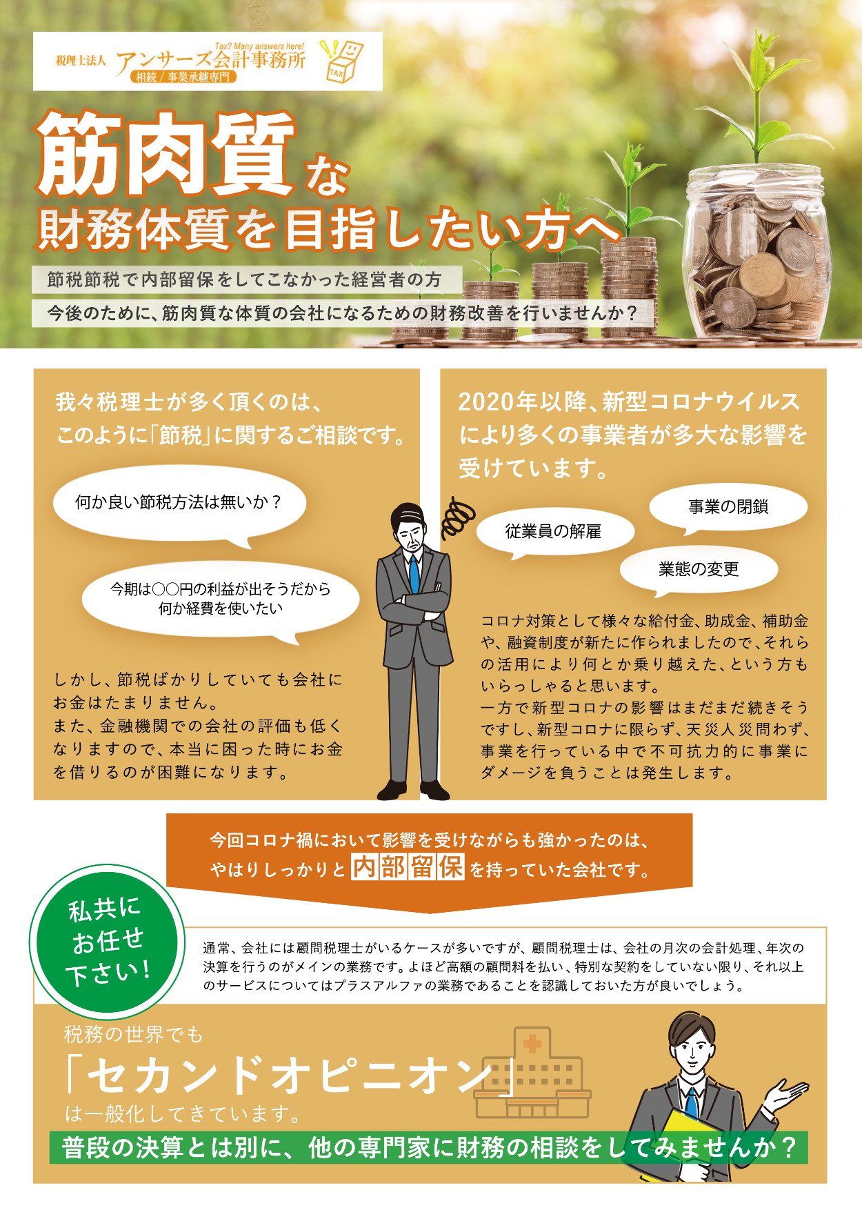 【実案件】 税理士法人アンサーズ会計事務所様 財務関連リーフレット