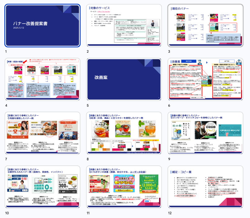 - バナー制作者側の、制作に至る過程と意図を考慮した上で、改善案を展開