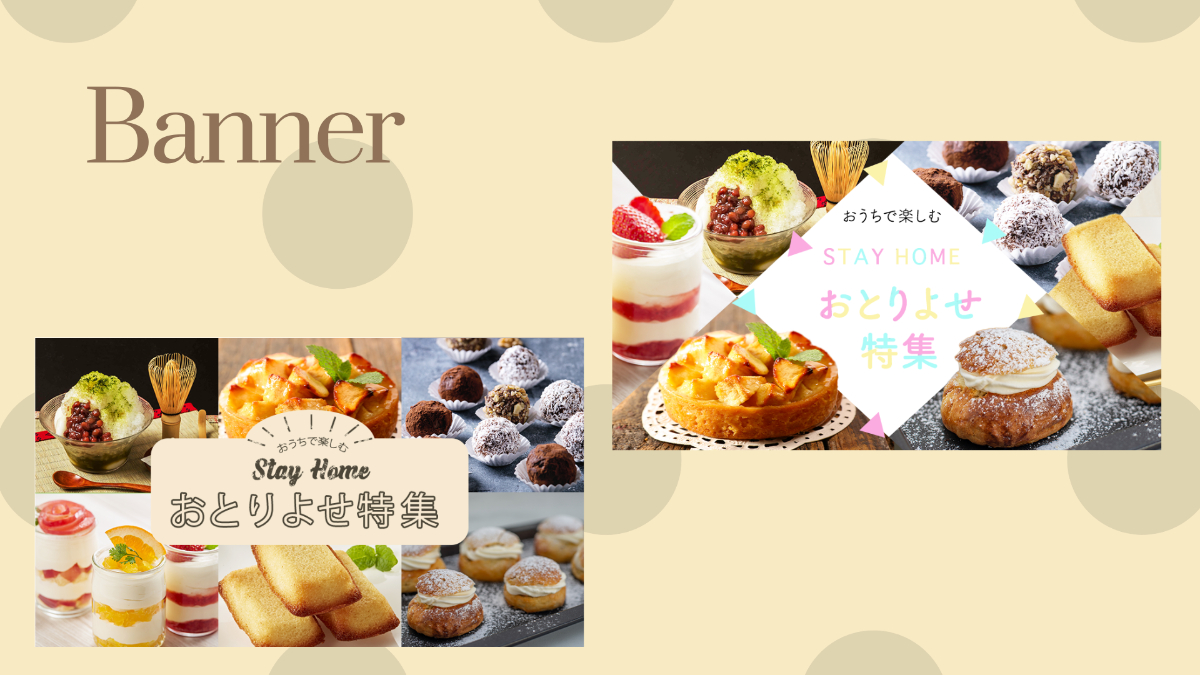 - 商品がおいしそうに見えるレイアウトにするため、タイル状に並べクリッピングマスクで配置