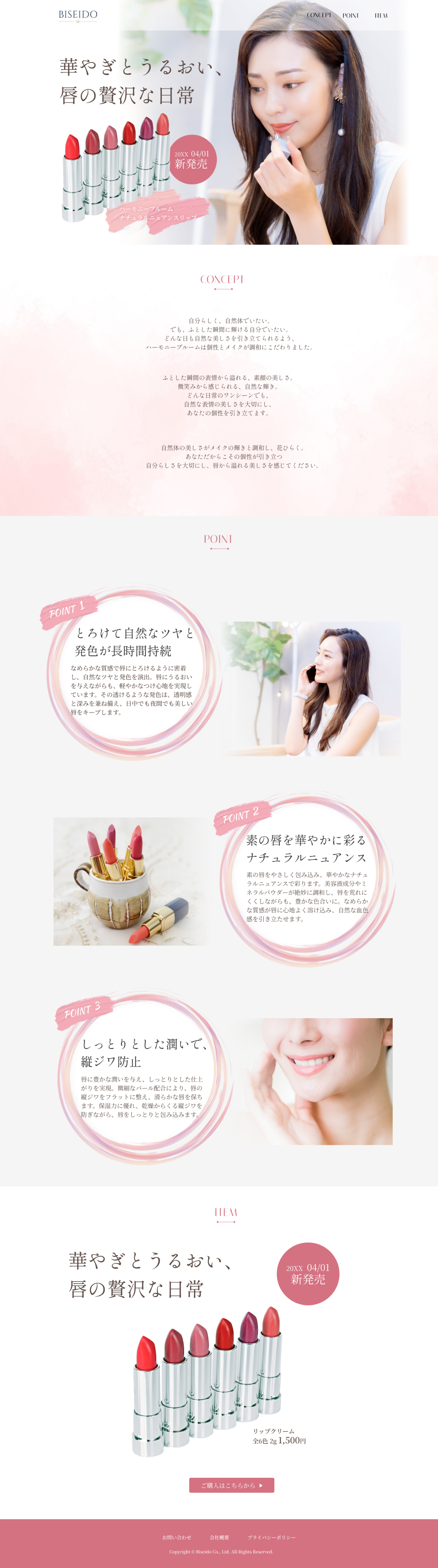 [課題制作]LP Hina. 見習いWebデザイナー🔰 OVERVIEW HerTechの課題で架空のLPを作成しました。 YEAR 2024 [使用ツール]・figma[制作時間]・6~7時間[注意した点]・全体的な余白の開け方と、画像配置のバランス・画像やフォントのイメージに合うカラーの選択・全体を見た時のバランス[完成したLP]