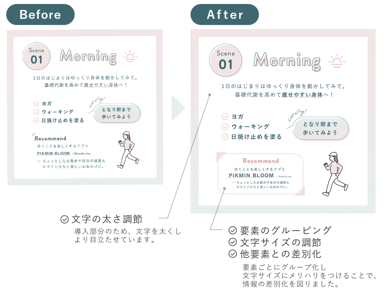 習慣化して毎日の日常に取り入れやすい簡単で具体的な内容を意識しました。