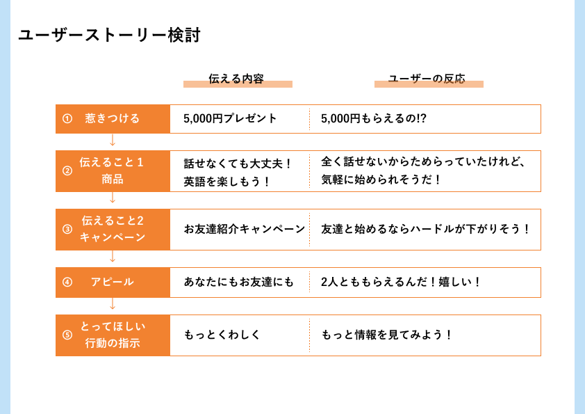 目的やターゲットから、あったほうがユーザーに魅力が届きやすいと考え、「話せなくても大丈夫!英語を楽しもう!」の文言を追加しました。