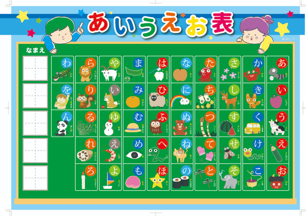 家庭で使用するために制作した、あいうえお表。家庭で大活躍している。