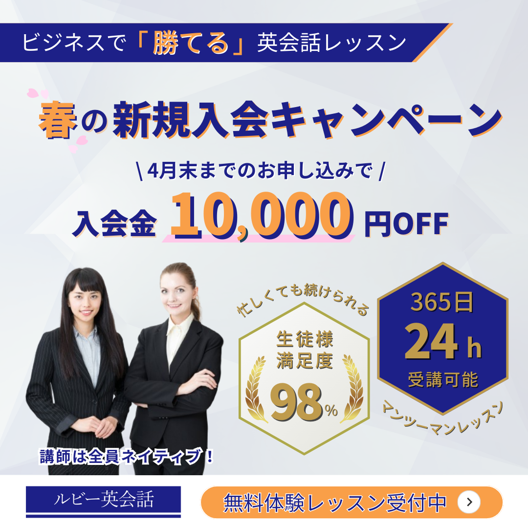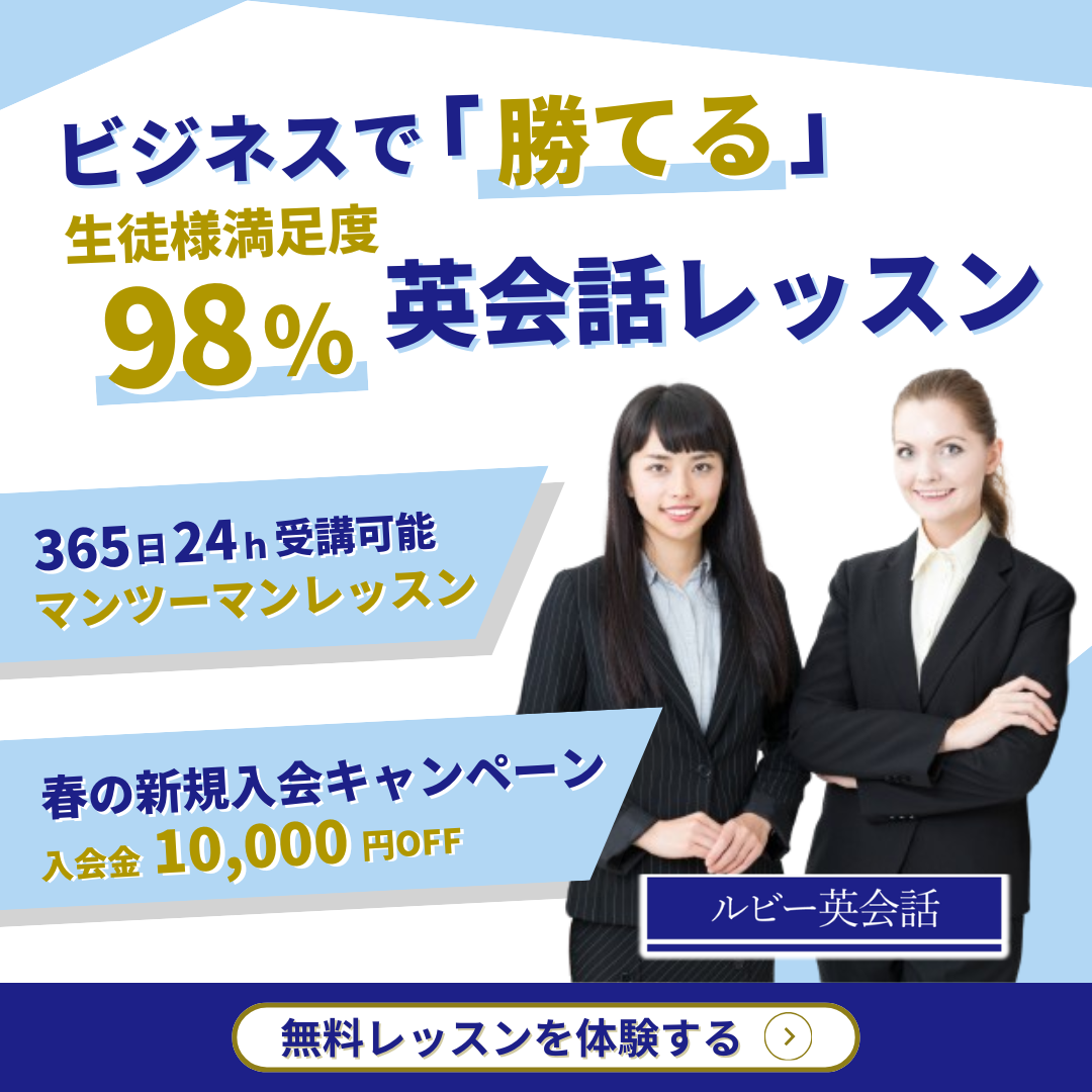 - 当スクールのポイントも可能でしたらバナーに入れてください (講師は全てネイティブ、ビジネスで勝てる英会話、生徒様満足度98%)