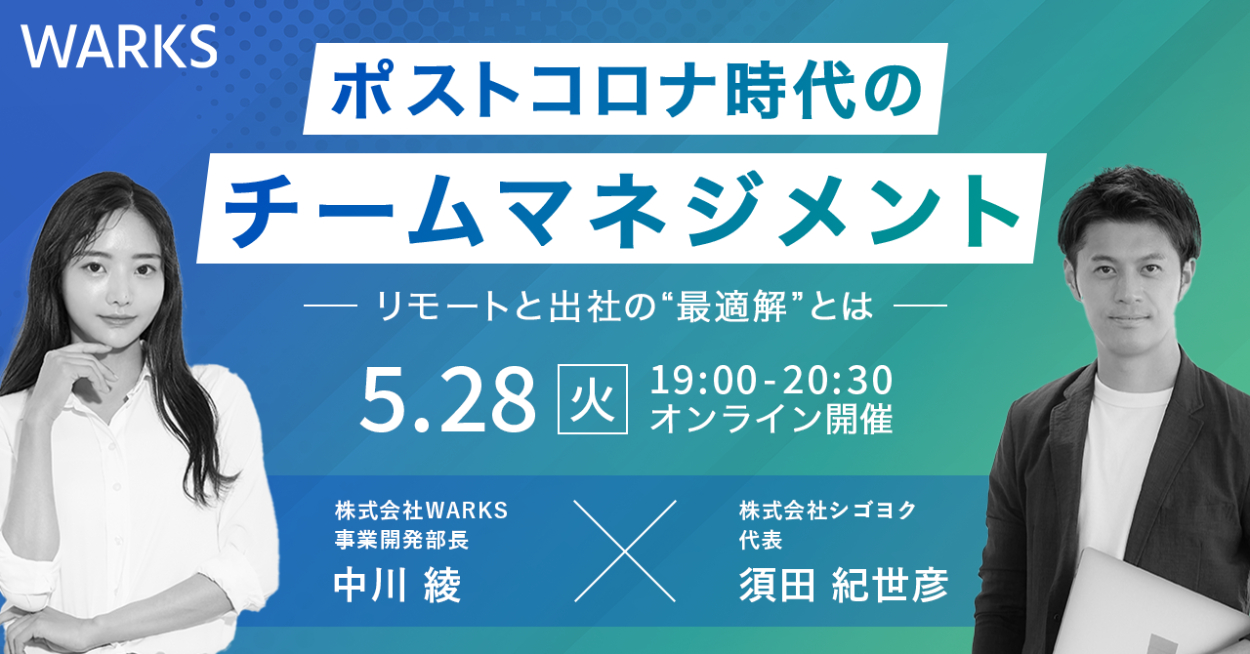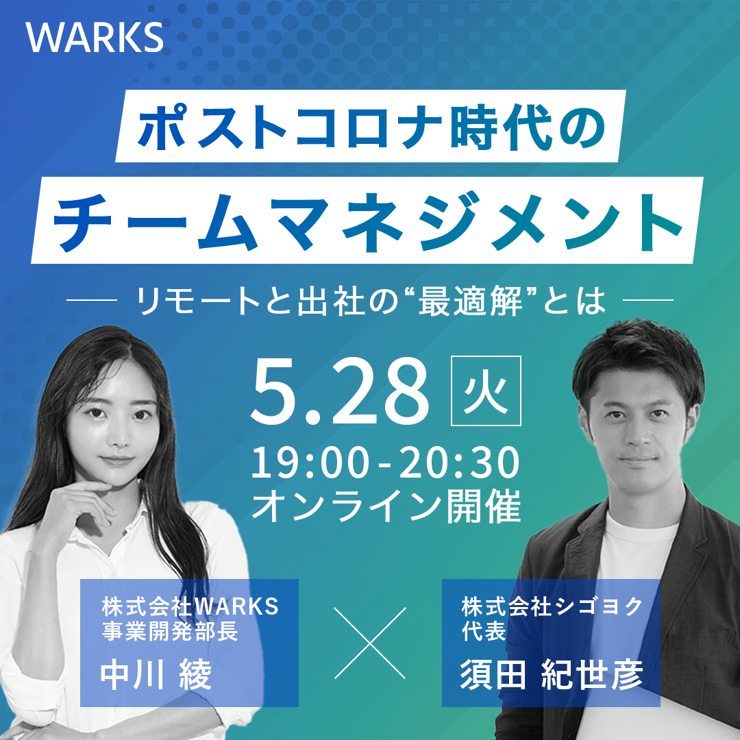 - 企業に対して新時代のワークスタイルコンサルティングを行う株式会社WARKSが、パートナー企業である株式会社シゴヨクと共同主催するオンラインセミナーの告知と集客