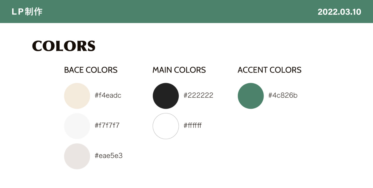 ペルソナが仕事を頑張りたいキャリアウーマン、大人の女性のため、女性らしさやシンプルな雰囲気が出るよう、ベージュや深い緑色を設定した。