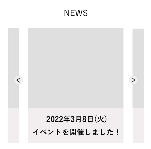 単に要素を縦に並べるとスクロール量が多くなり、冗長になってしまうため、比較的優先順位が低く要素(今回の場合はNEWS)はカルーセル表示とした。カルーセルにした場合でもユーザーが情報を見逃さないよう、矢印を配置した。また左右の要素を見切れさせるようにした。