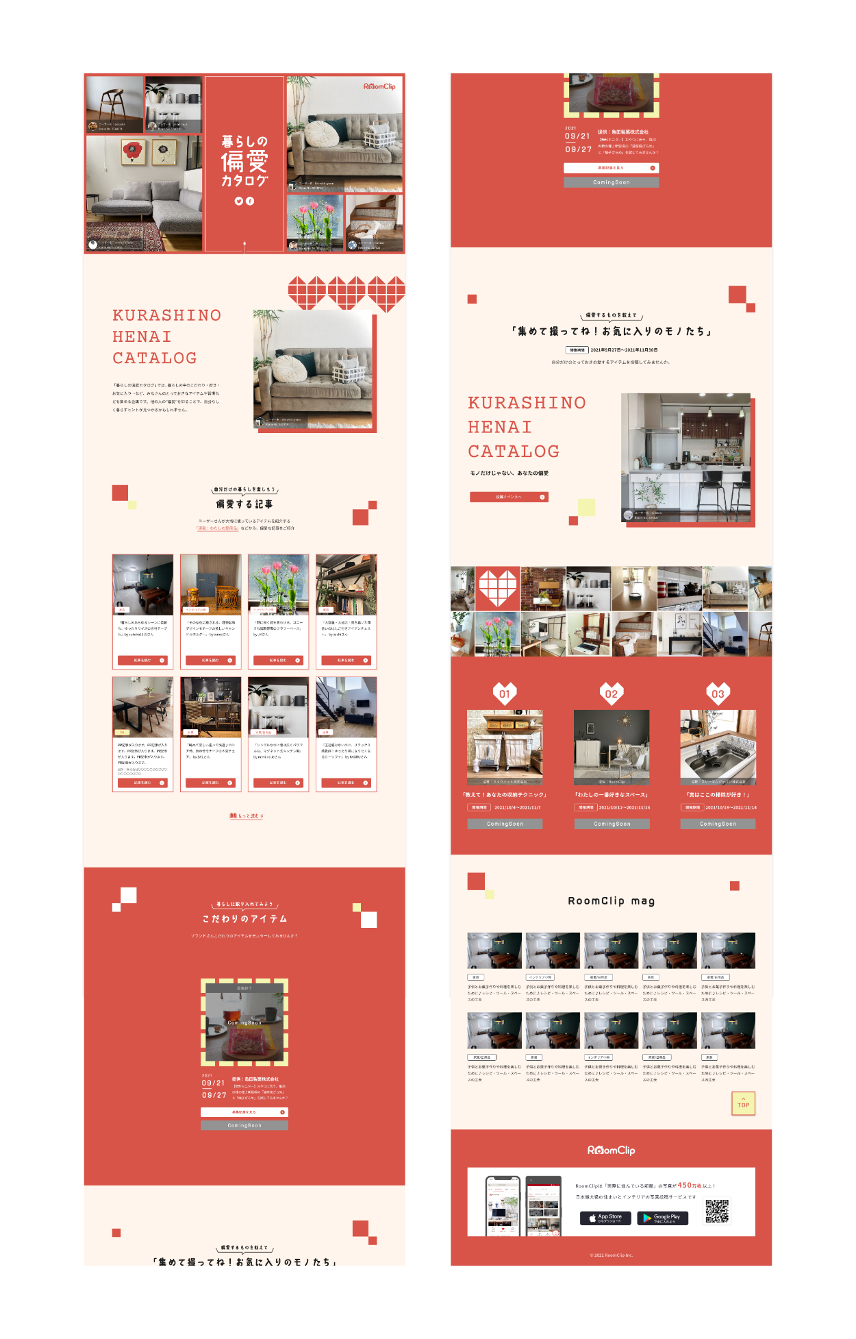 制作物:インテリアシェアアプリで有名なRoomClipさんのキャンペーンサイトの制作 担当:サイトデザイン