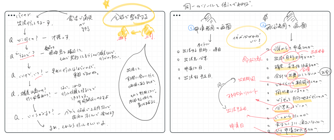 自然なやりとり(行動フロー)の中から必要な要素を抽出を試みているのが下記です↓