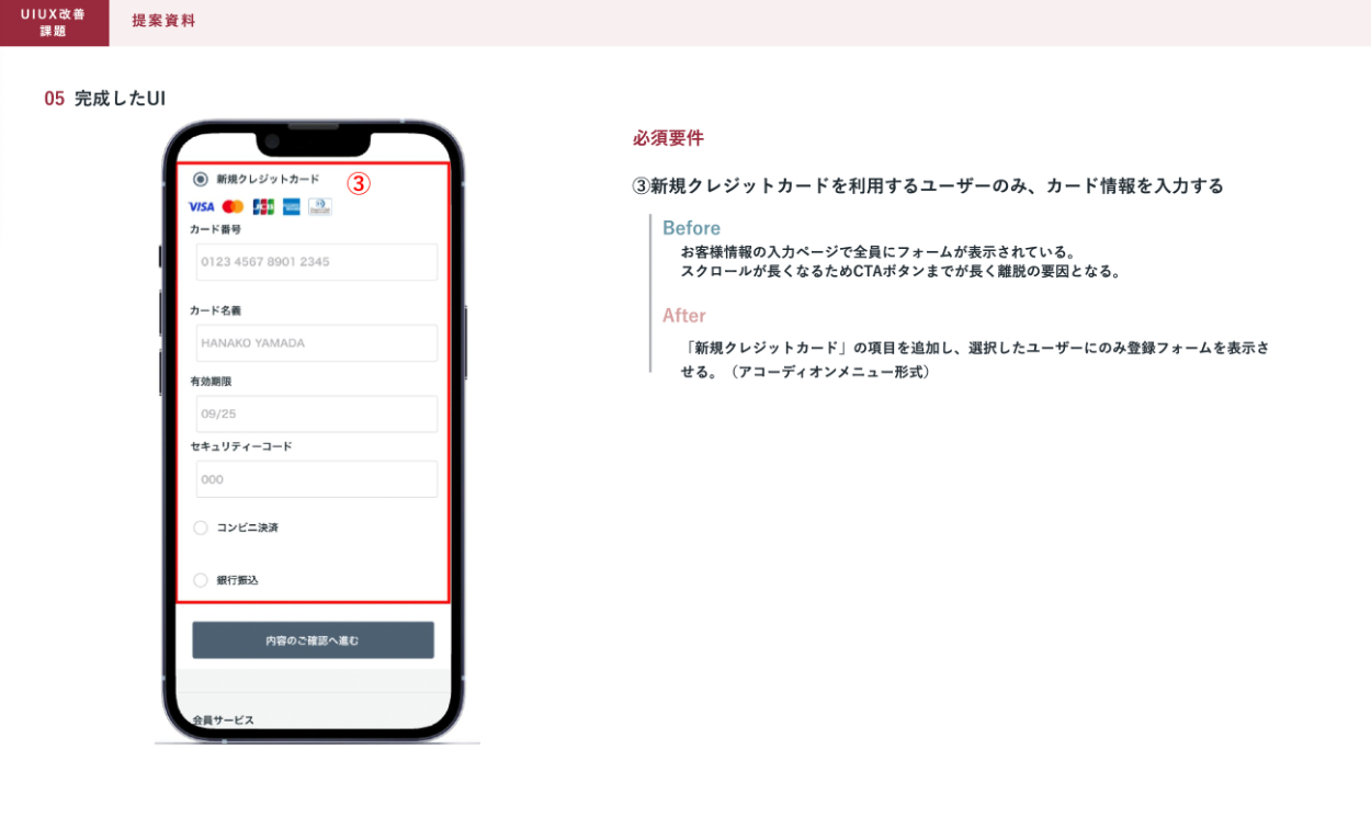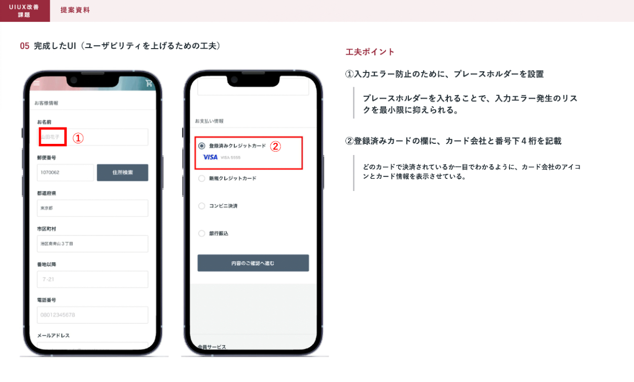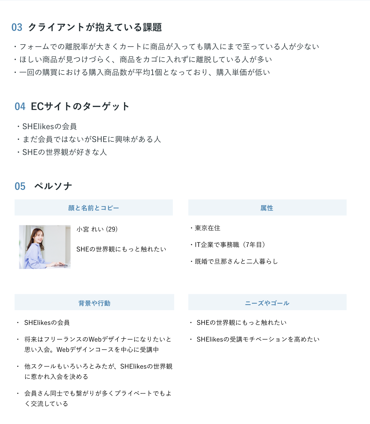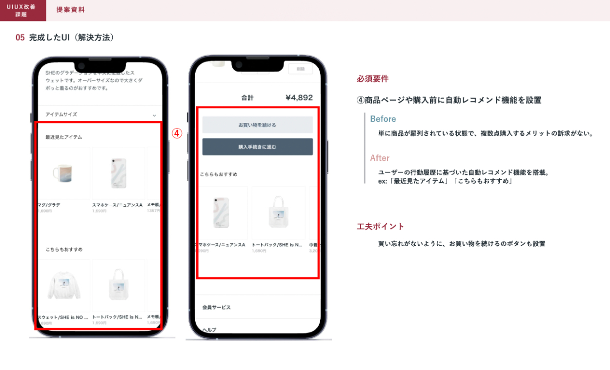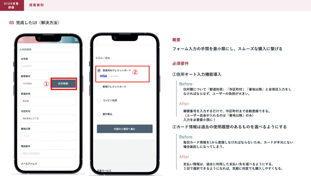 ▼架空のクライアントからの依頼内容を元に、クライアントが感じているECサイトの課題に対してUIUX改善により解決案を提示する。