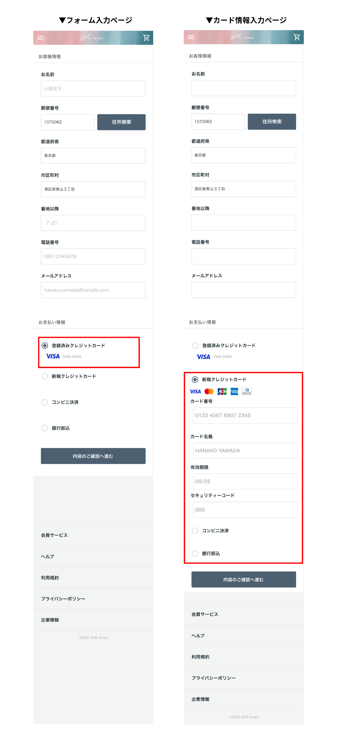 ・別のカードを使用したい場合は、アコーディオンメニューで設置し、必要なユーザーだけ入力フォームを表示させる