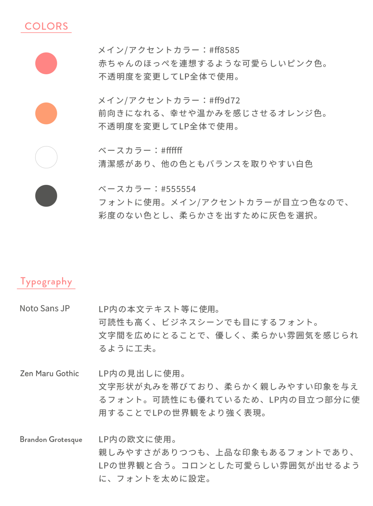 コーディングをすることを意識して、見出し・本文のフォントサイズや見出しのあしらい、余白を統一することができました。