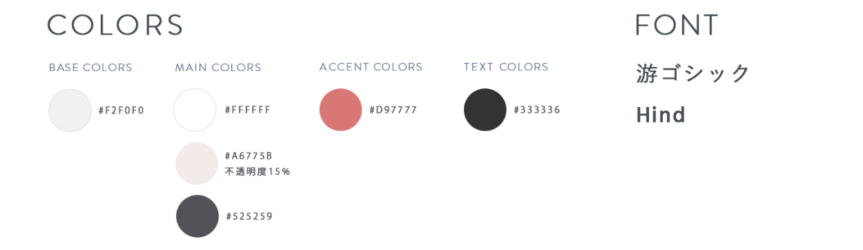 メインカラー:落ち着いて洗練された印象を与える灰色やベージュ、可読性を保つ白