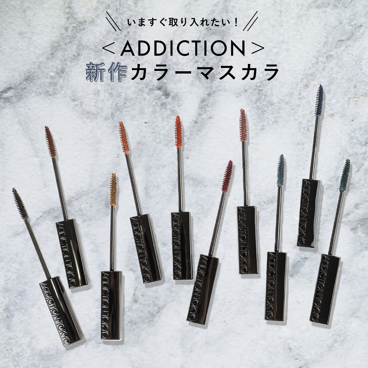 ・10色あるマスカラのブラシ画像とスウォッチ画像を整え、色見本と色番号と名前が一目見てわかるよう配置しました。