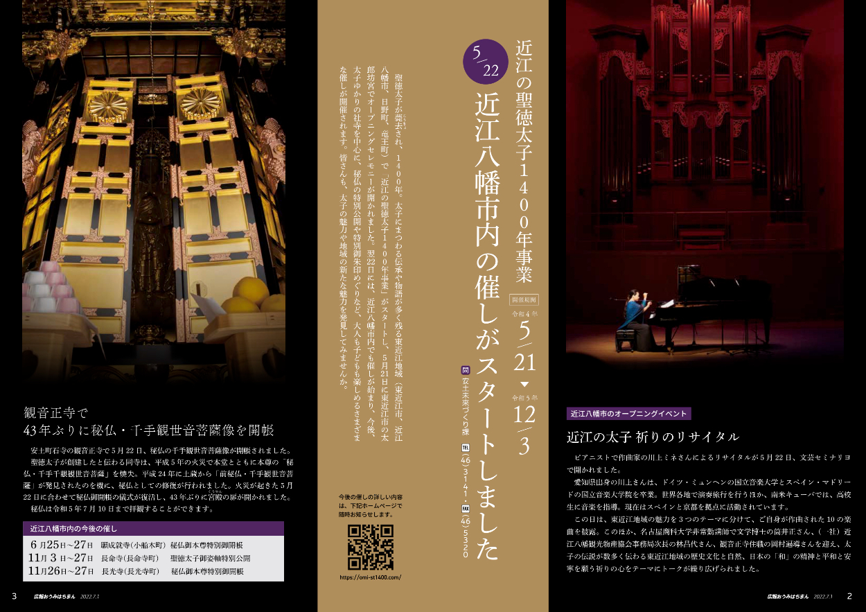 7月号 「近江聖徳太子1400年事業 近江八幡市内の催しがスタートしました」