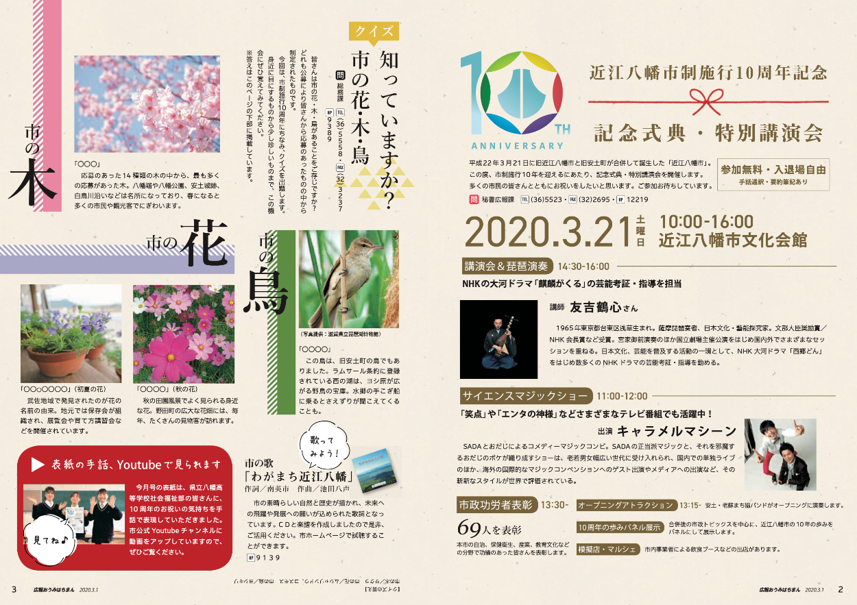 3月号 「近江八幡市市制施行10周年記念 記念式典・特別講演会」