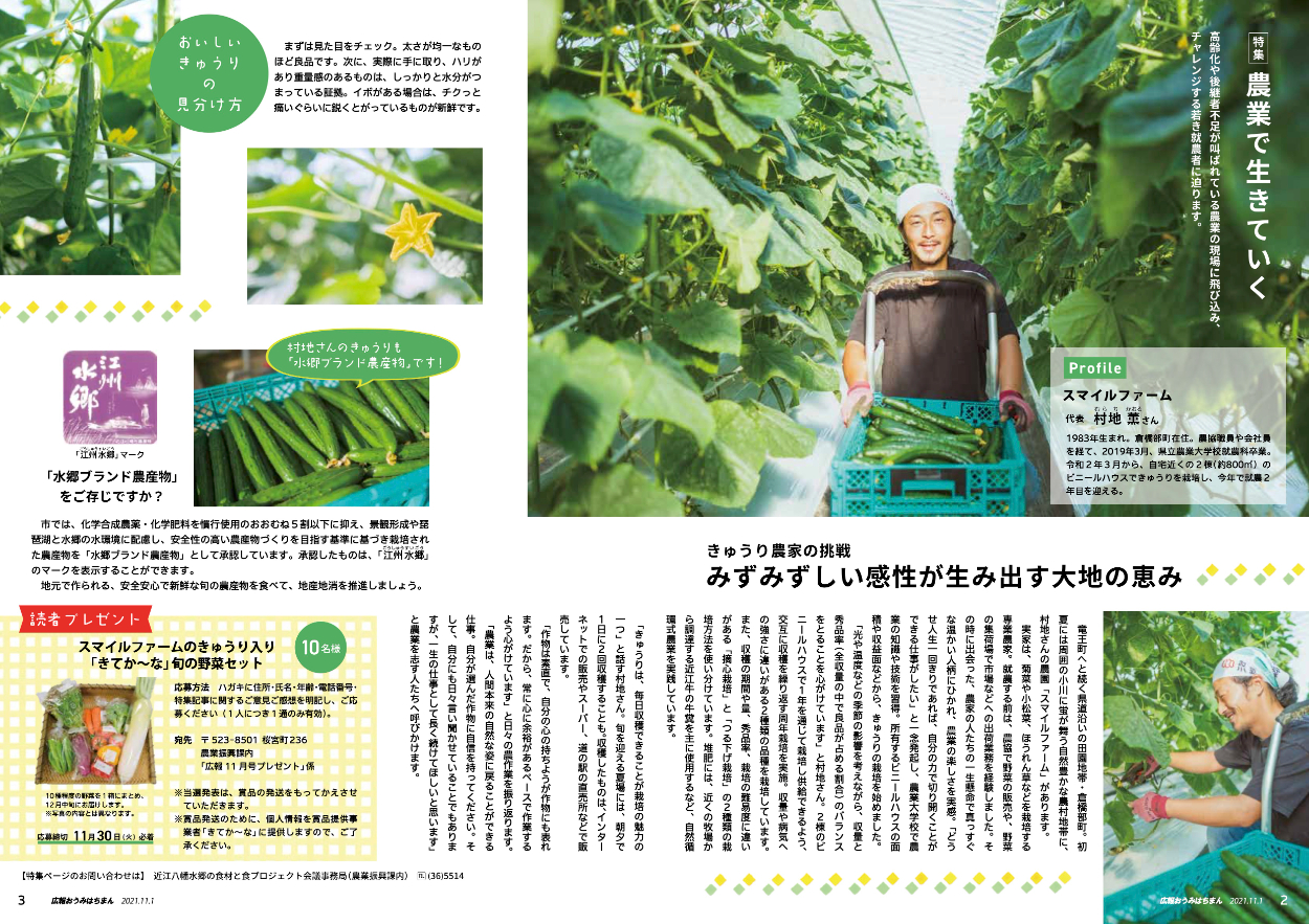 11月号 「農業で生きていく」 2020年滋賀県広報コンクール 広報紙の部(知事賞)