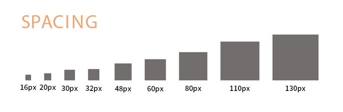 110px・130pxを中心に余白を大きく使用し、80px以下の余白については中見出し、小見出しの間を使用するようにいたしました。