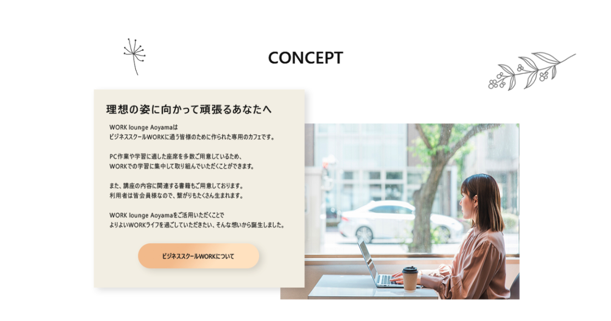 初めての方には、CONCEPTに専用ボタンを作成することでWORK Lounge Aoyamaについて知ってもらうように情報提供する