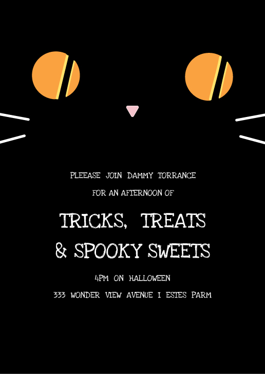 ハロウィンのポスター YM 事務員 OVERVIEW ハロウィンをテーマに作成した架空のポスターです。 ハロウィンをテーマに、黒猫の顔を全面に置いて作成しました。ホラー感のあるフォントでテキストを書いています。