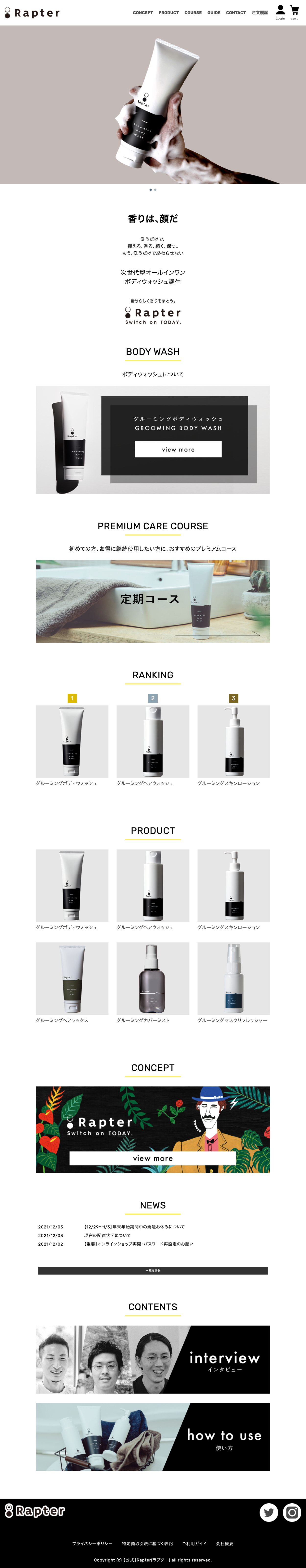 2021年に本サイトをリニューアル。新しいコンテンツを増やしたいとの要望があったため、元のデザインを活かしながらリニューアルを行なった。色味などは容器のデザインが白と黒のため、そちらをメインに制作し、サブカラーが黄色のためコンテンツのアンダーラインとして使用。30代男性がターゲットのためシンプルにまとめた。