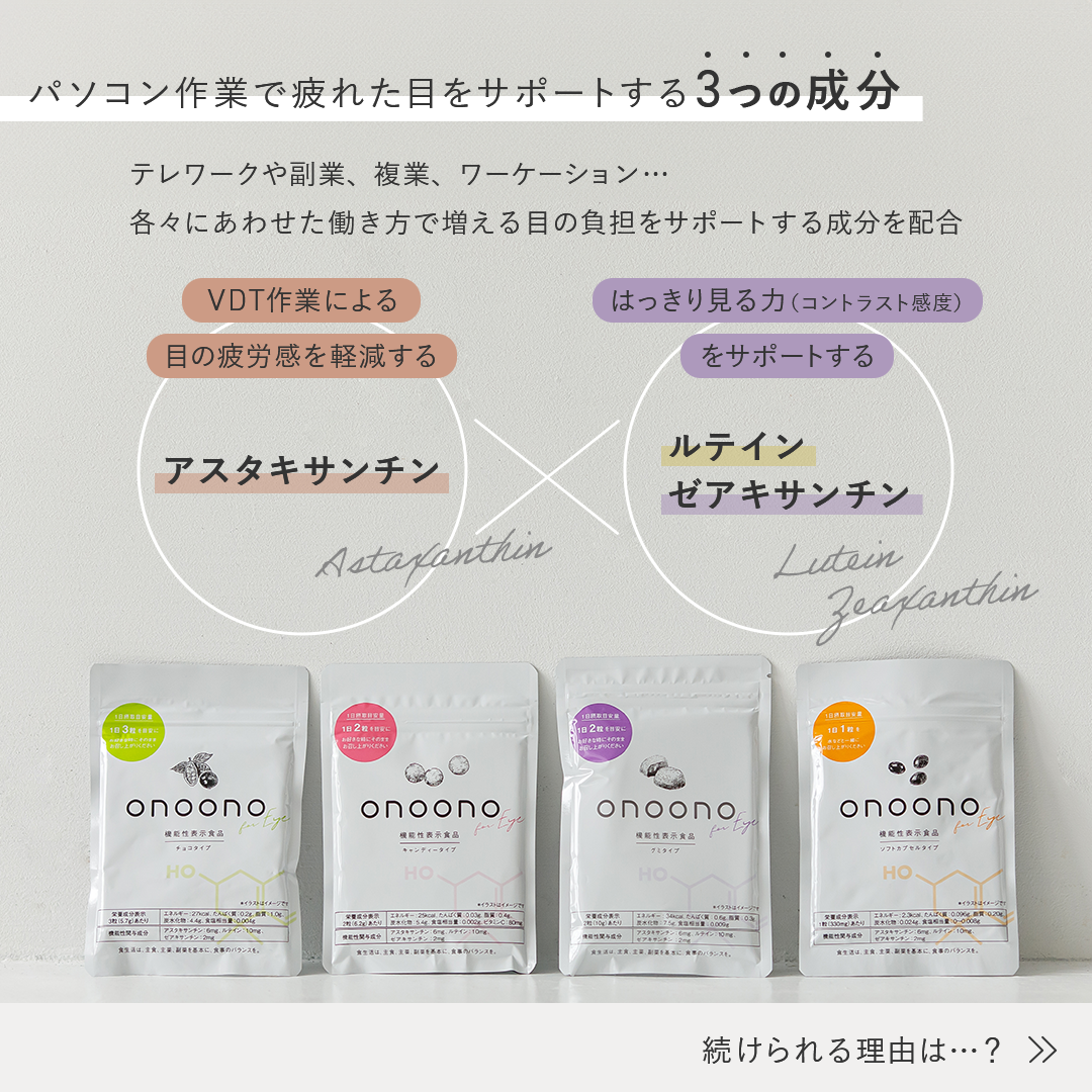 ・目に有効な機能性関与成分を配合した機能性表示食品『onoono for eye』のInstagram投稿クリエイティブ制作