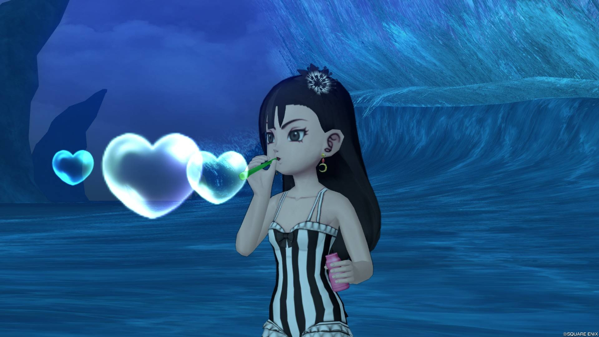 ナドラガンドの混沌の海岸〜 サブフーラ 社会人 サブのサポート仲間にする為ルビーの髪型に変える為美容院無料券を2つ買ったと思ったら3つ買っていました!wせっかくなので髪色を漆黒とコアブラックにしてシャボン玉🫧しました!^^