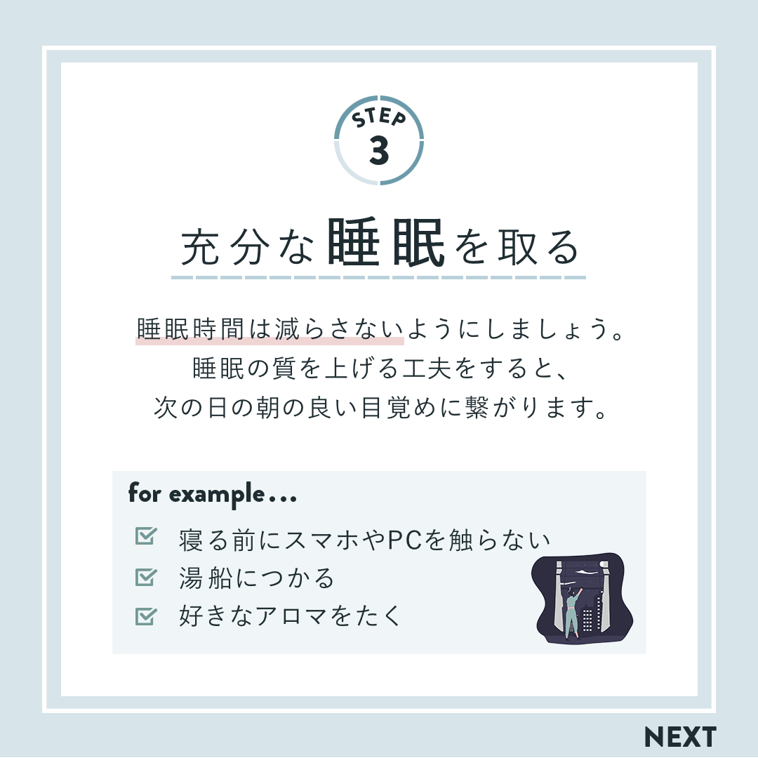 - 具体的な行動を提案することで、自分もできるかも!朝にやってみようかな!と読み手の生活とリンクさせて行動を起こさせるように工夫しました。