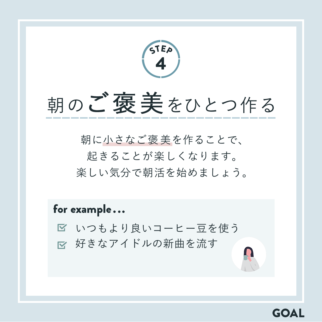 朝の時間を有効に使いたいものの習慣化が難しいと感じる方に向けて、朝活の始め方を4STEPでまとめる。