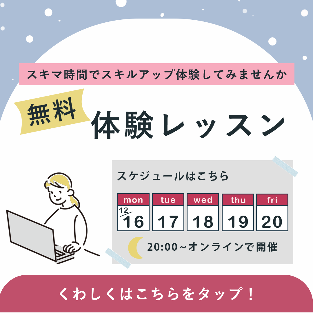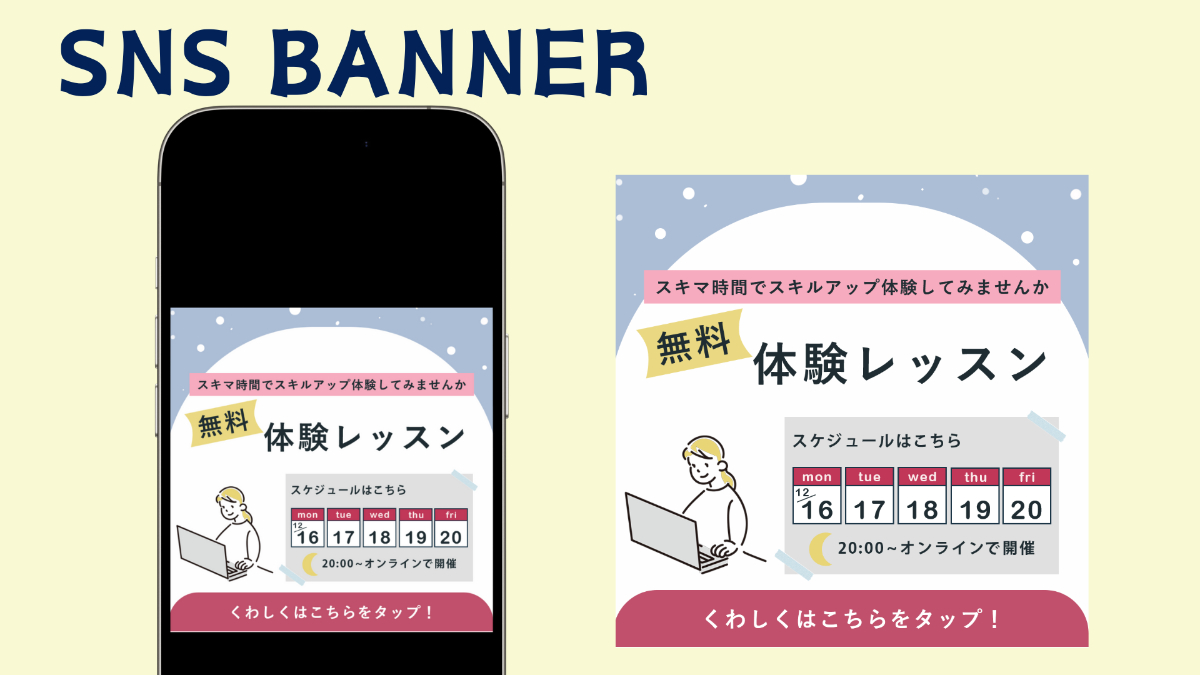 テーマ「体験レッスンの日程を画像の中で見せるバナー」